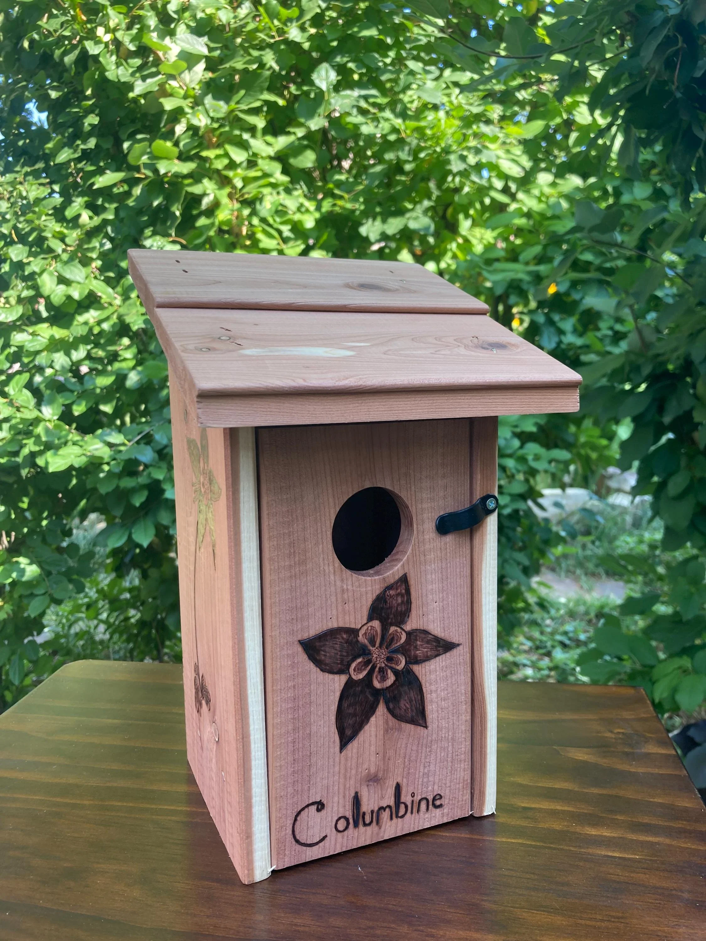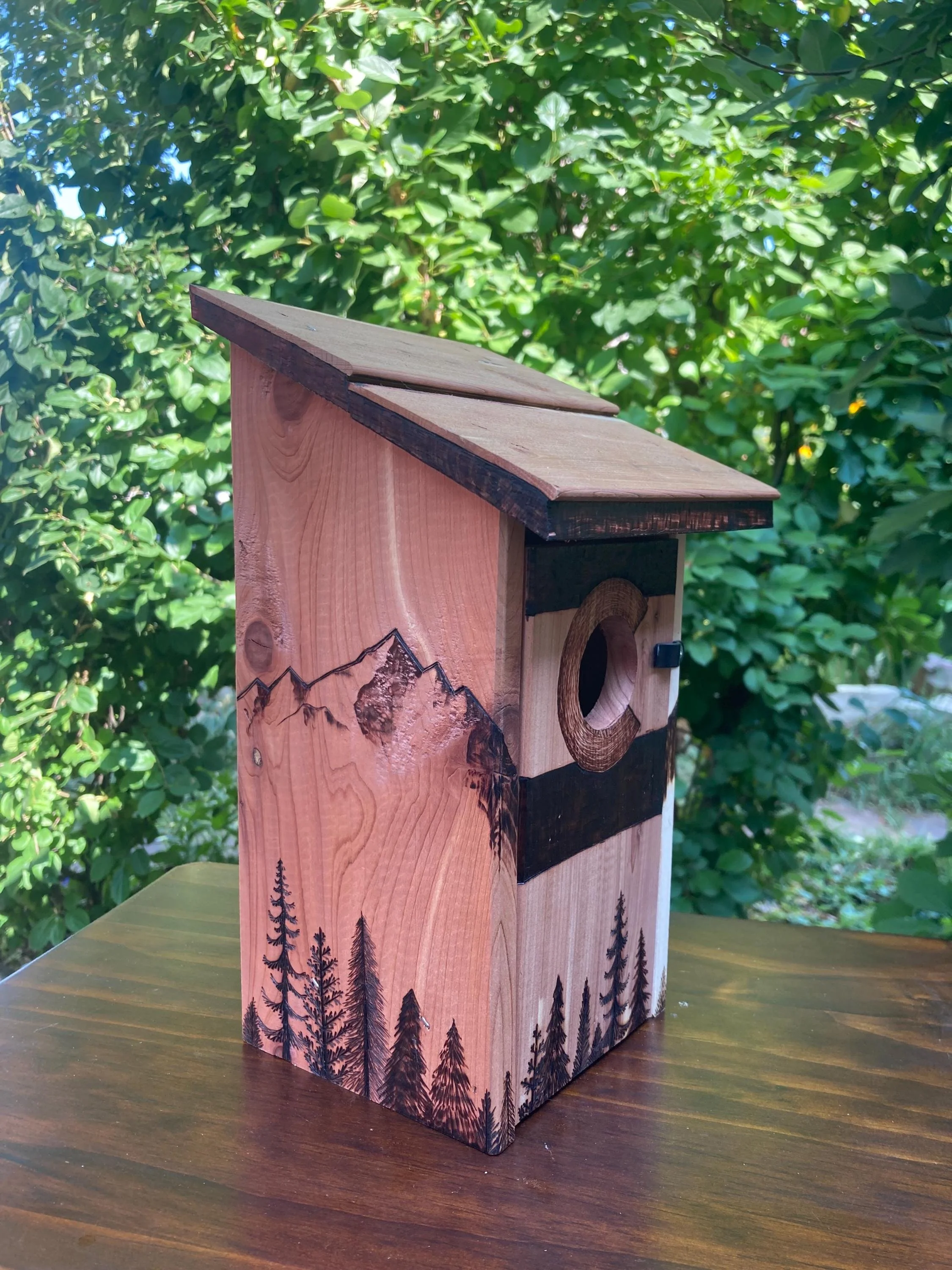 Bird Houses Bird house with wood burning design $80.00 Add To Cart Added! Bird house with wood burning design $80.00 Add To Cart Added! Colorado Flag Bird house with wood burning design $80.00 Add To Cart Added!